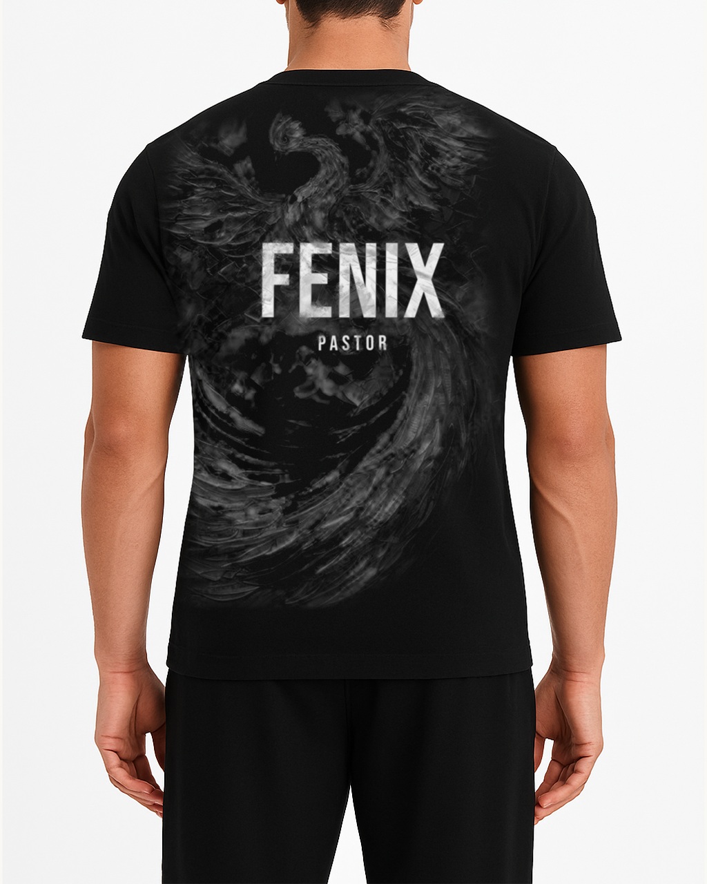 Tričko Fénix tee, blck/wht k příležitosti vydání alba Pastor - Fénix. Trička jsou vyráběna na zakázku dle vlastního střihu.